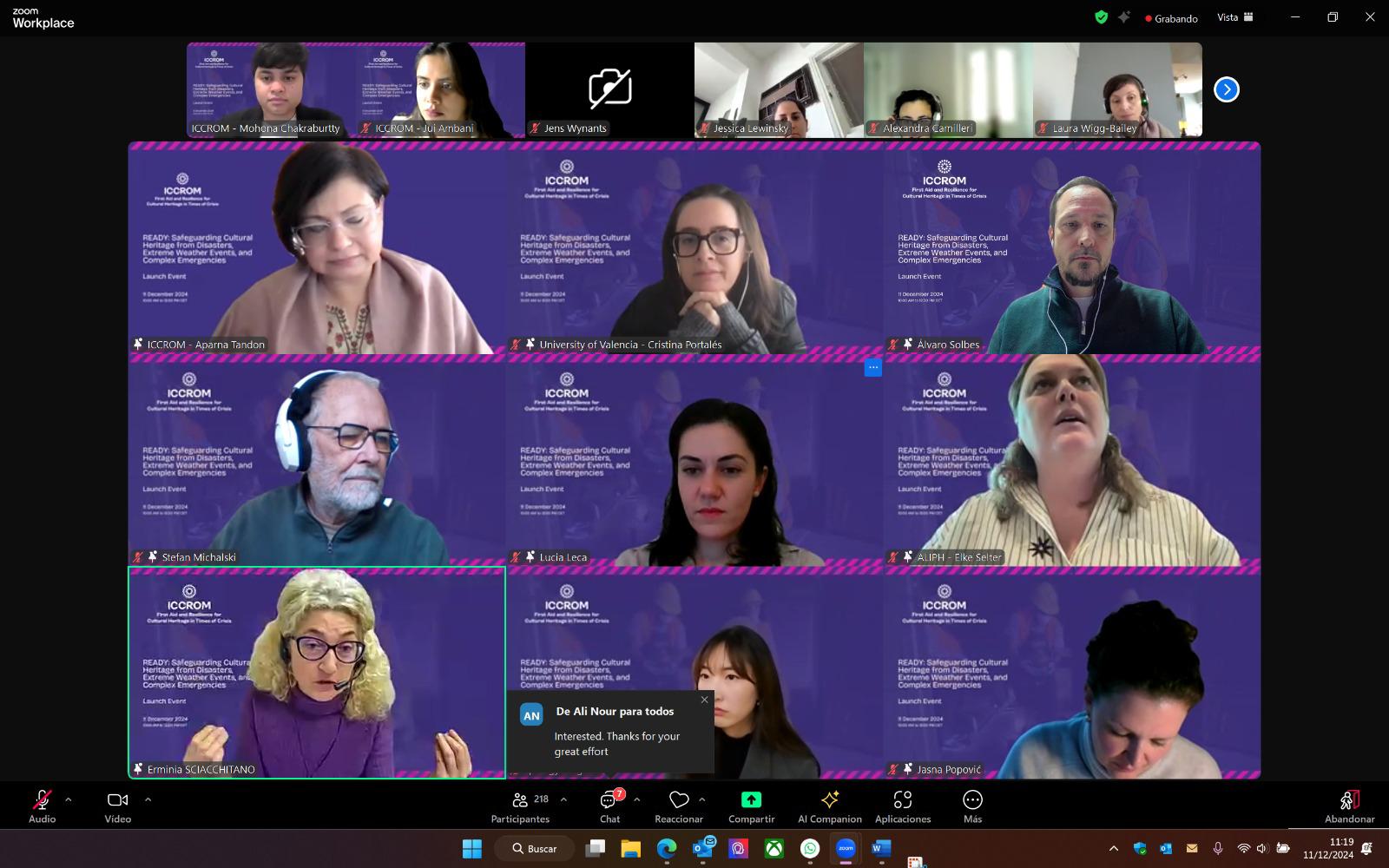 On 11 December 2024, Cristina Portalés and Álvaro Solbes, part of the ChemiNova project team, attended the launch of READY: Safeguarding Cultural Heritage from Disasters, Extreme Weather Events, and Complex Emergencies. This ICCROM-led initiative, supported by the EU’s Creative Europe Programme, is dedicated to enhancing the resilience of Europe’s cultural heritage amidst growing climate and disaster challenges.